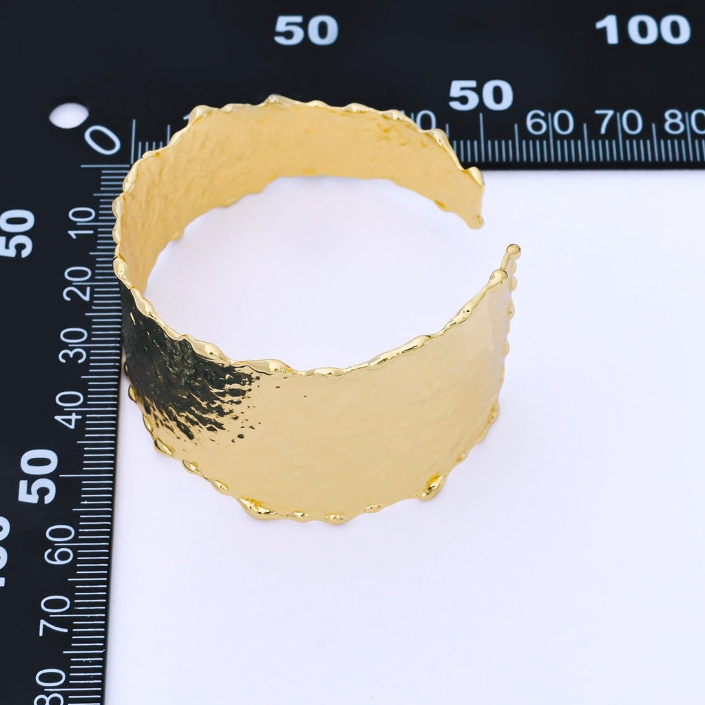 24K Gold Filled Wide Hammered Molten Geometric Cuff Bracelet | WA-3235