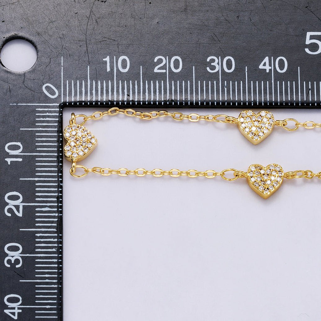 24K Gold Filled 1.6mm Micro Paved CZ Heart Cable Unfinished Chain by Yard | Roll-00420