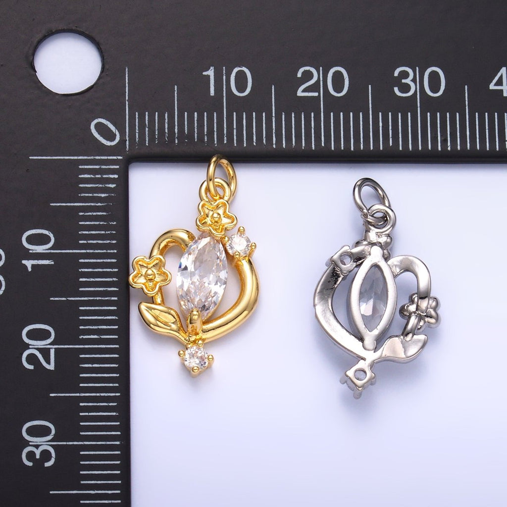 24K Gold Filled Marquise CZ Vine Flower Charm in Gold & Silver | C031