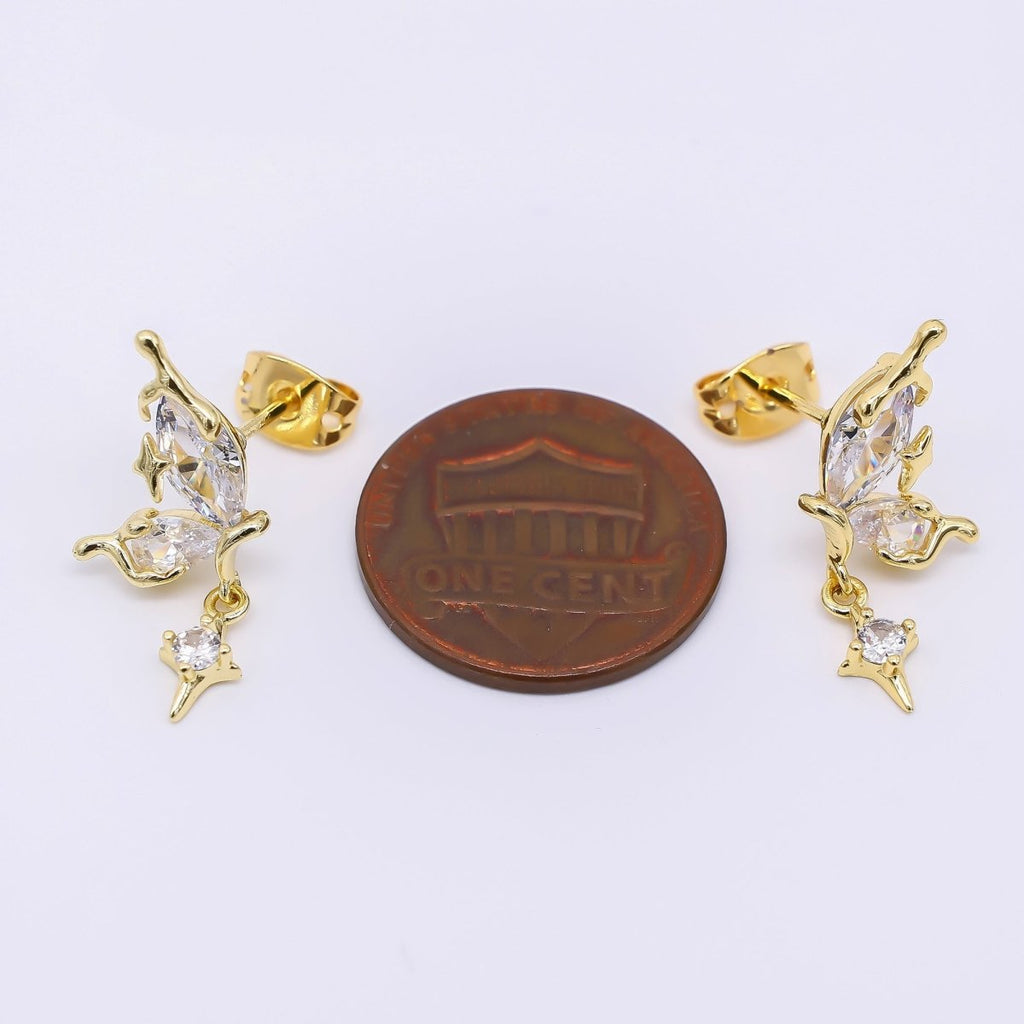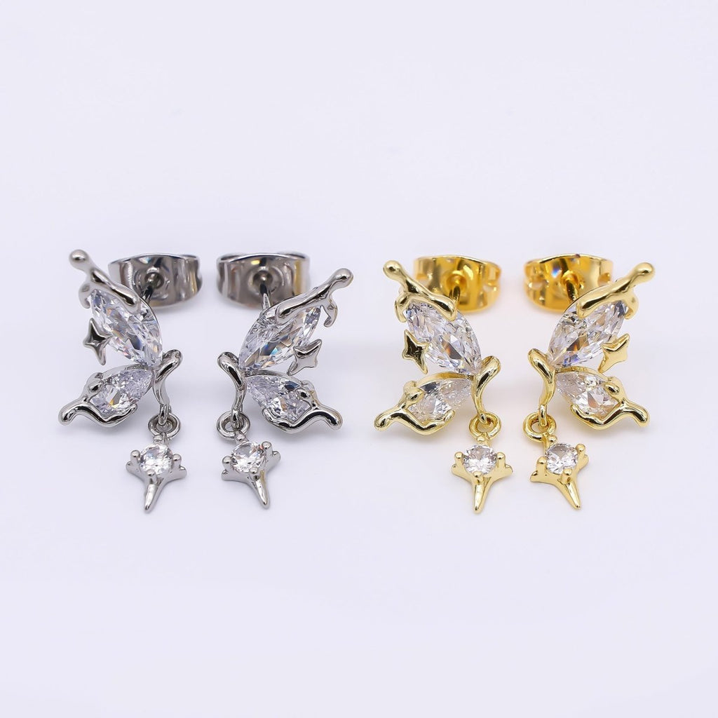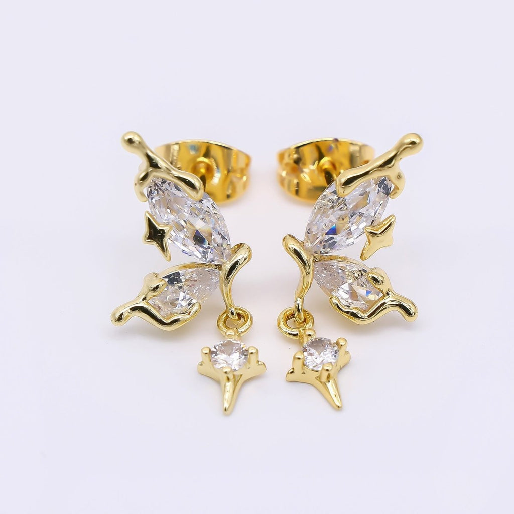 24K Gold Filled Marquise & Teardrop CZ Butterfly Wings Set Drop Studs Earrings in Gold & Silver | AJ-038 AJ-039