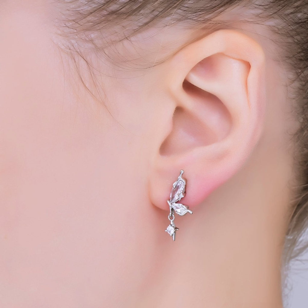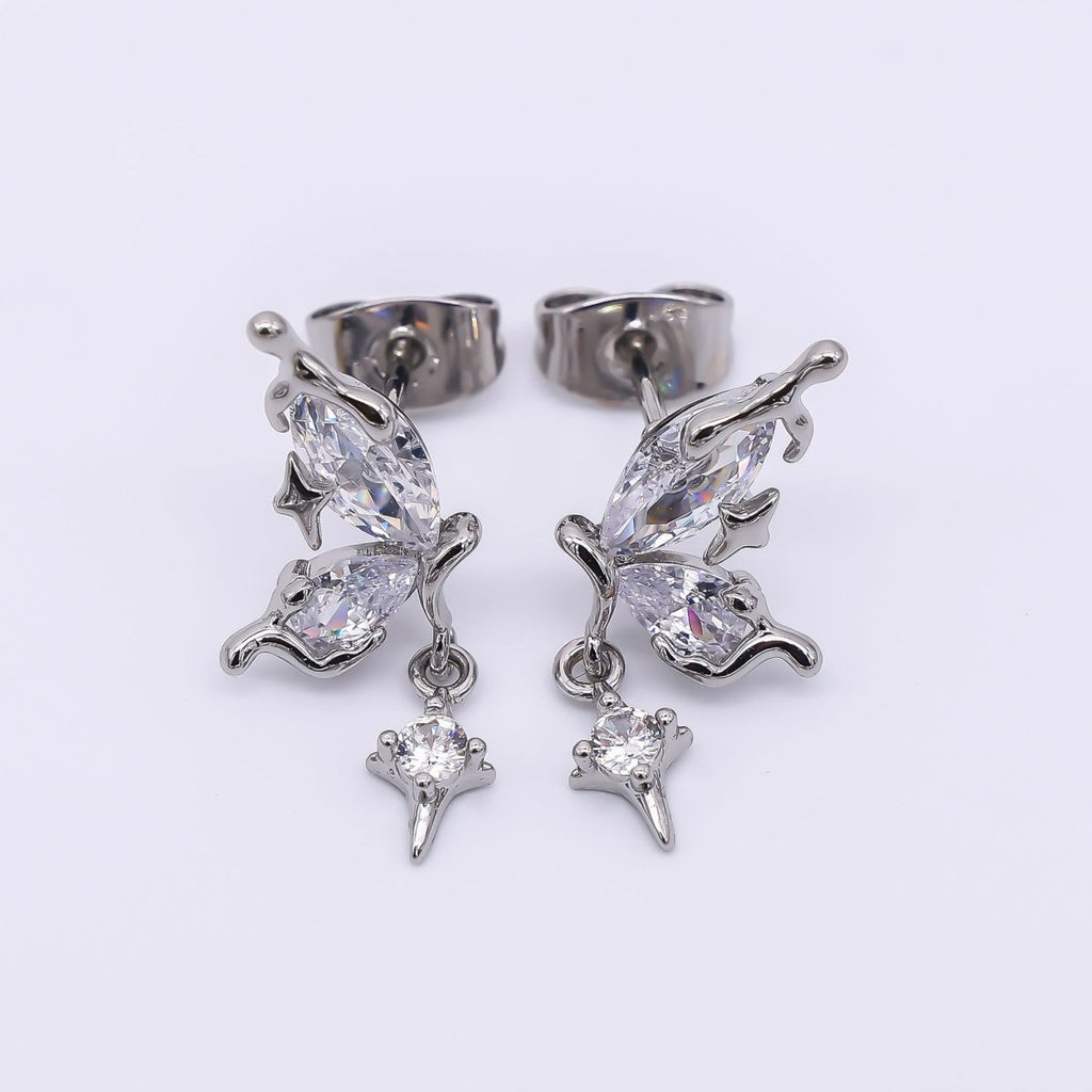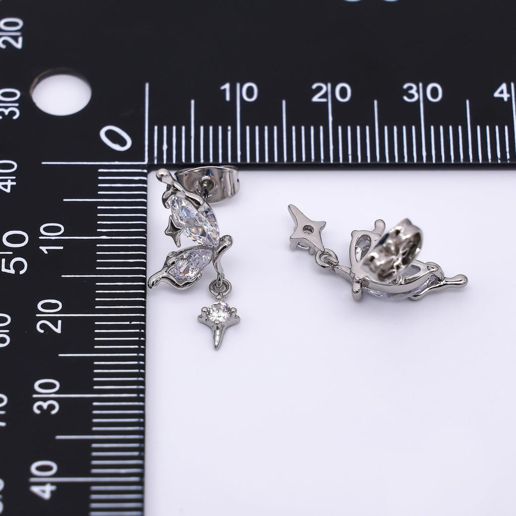 24K Gold Filled Marquise & Teardrop CZ Butterfly Wings Set Drop Studs Earrings in Gold & Silver | AJ-038 AJ-039