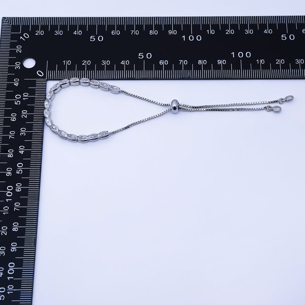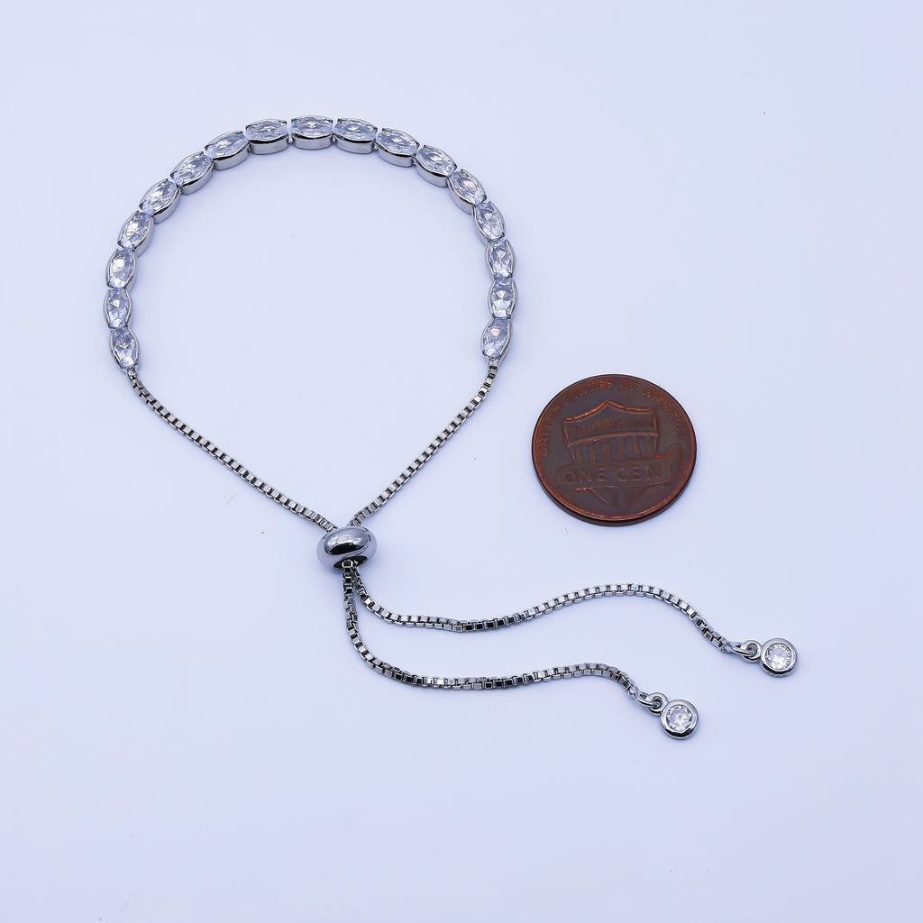 24K Gold Filled Oval CZ Tennis Chain Bolo Bracelet in Gold & Silver | WA-3902 WA-3903