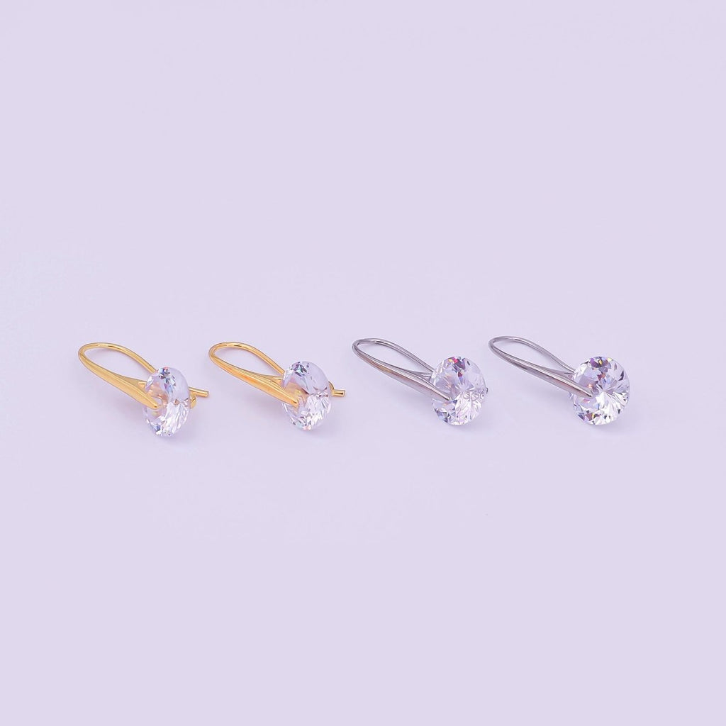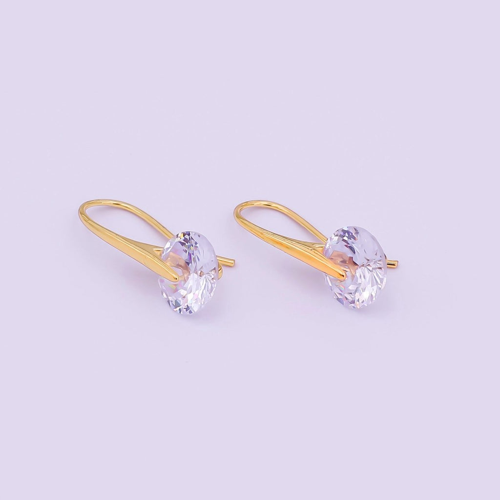 24K Gold Filled Round CZ Sparkly Round Circle Drop Hook Earrings in Gold & Silver | AI-525 AI-526
