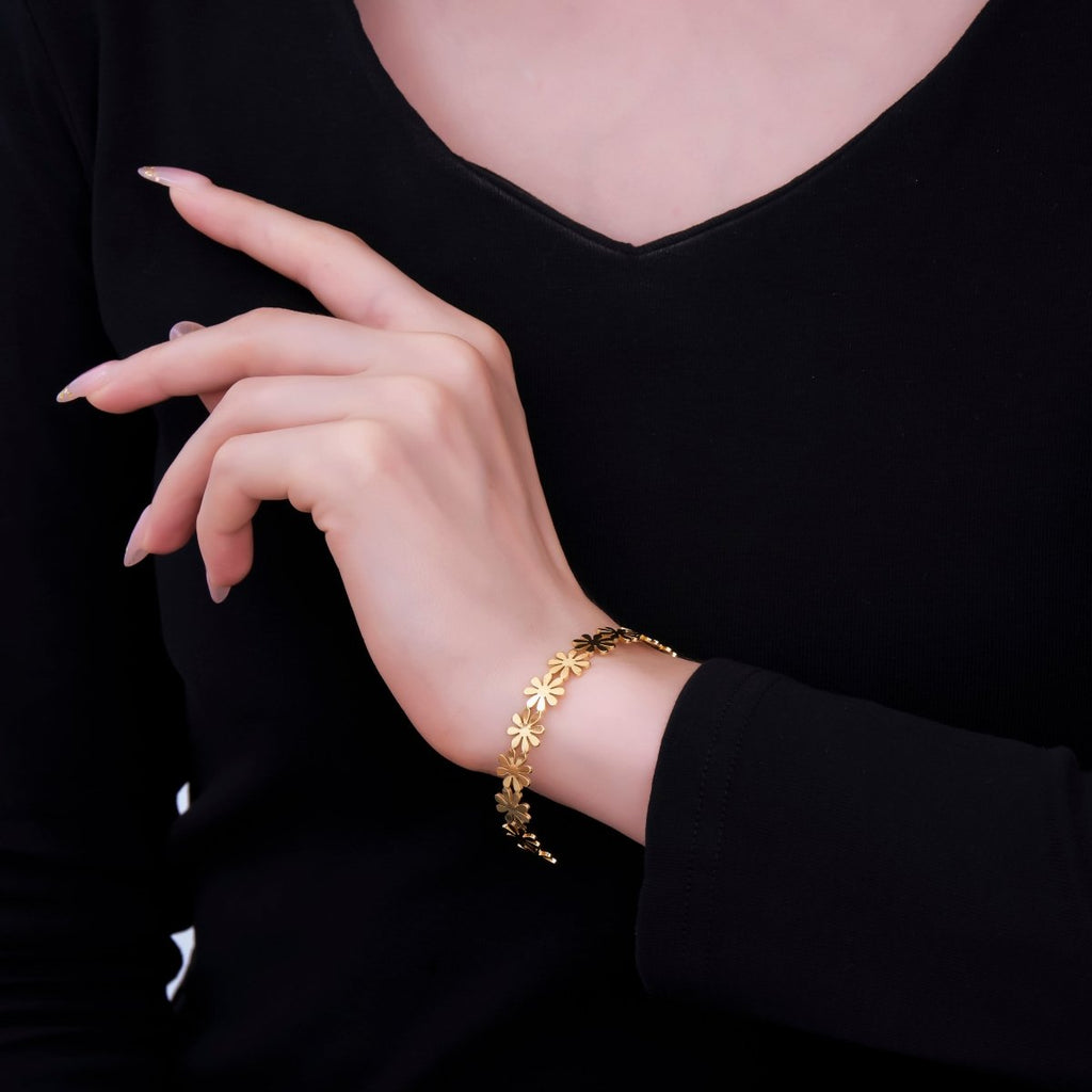 24K Gold Filled Spring Flower Garden Bangle Bracelet | WA-3404