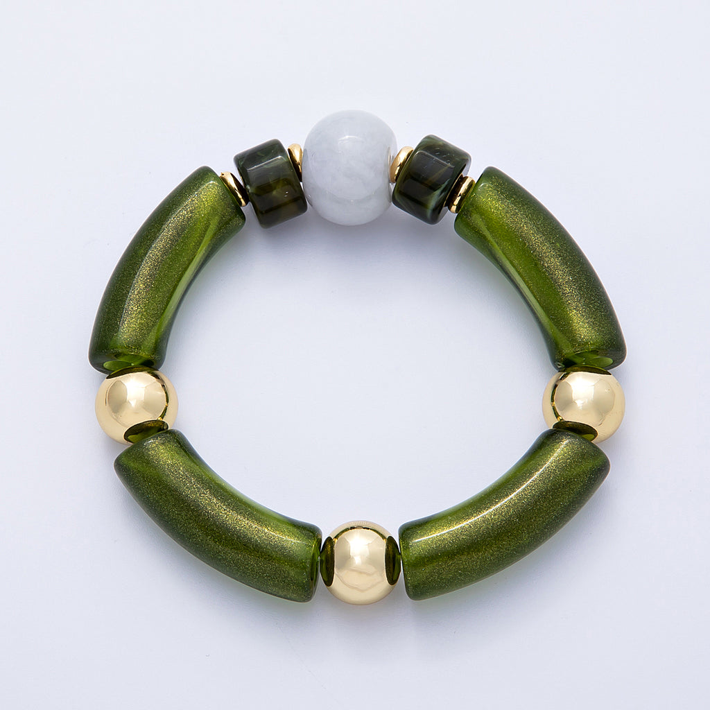 18K Gold Filled 6mm Green Peridot Gemstone Bead Stretch Bracelet | WA-04139