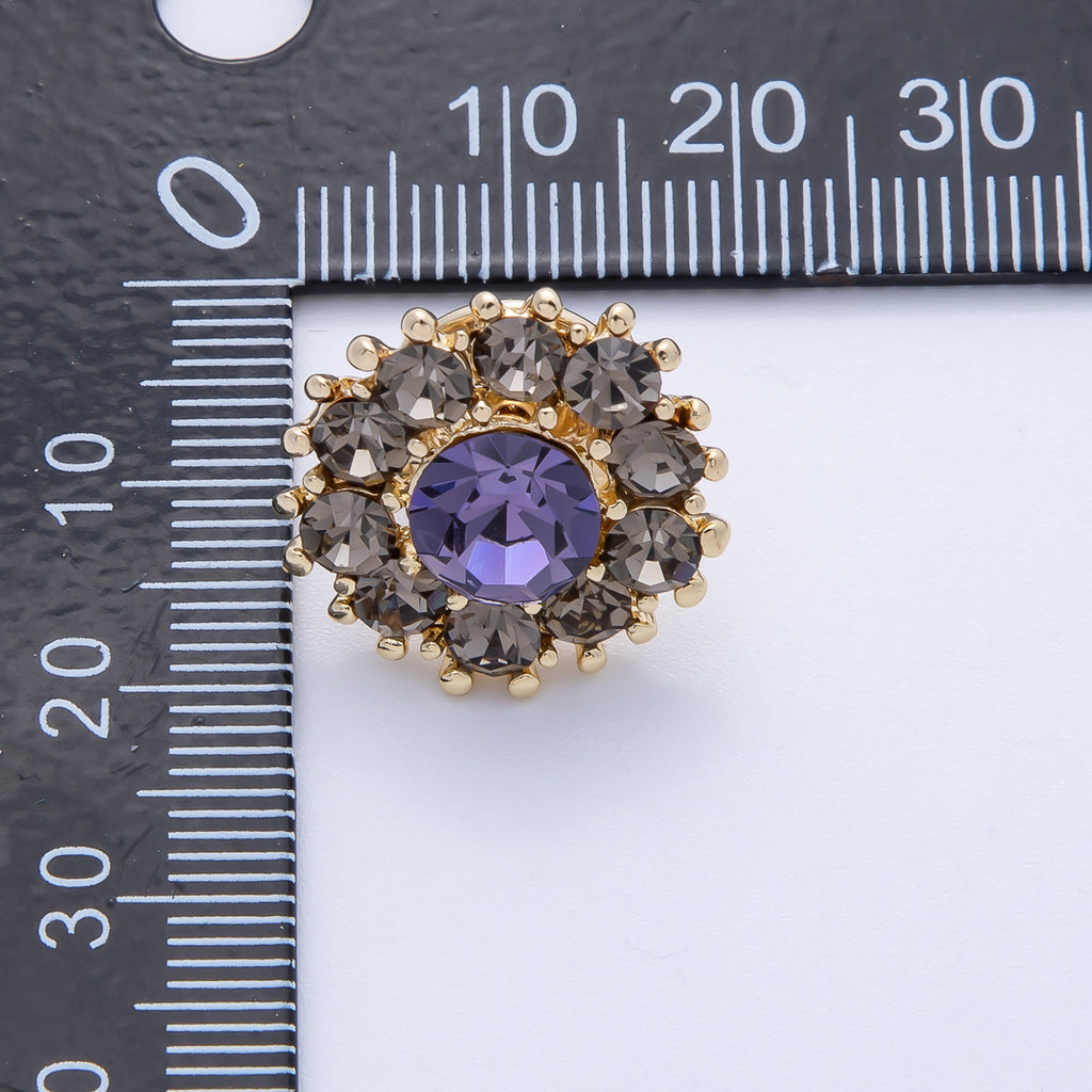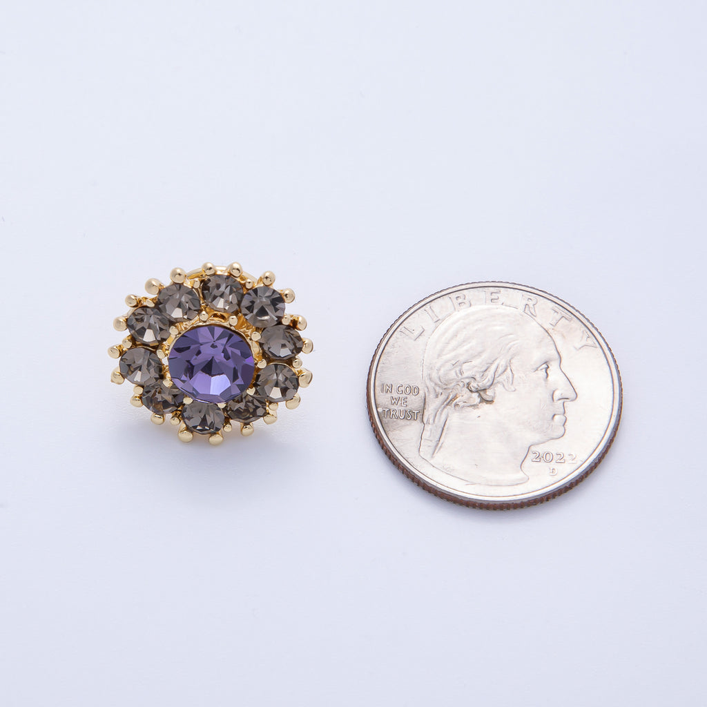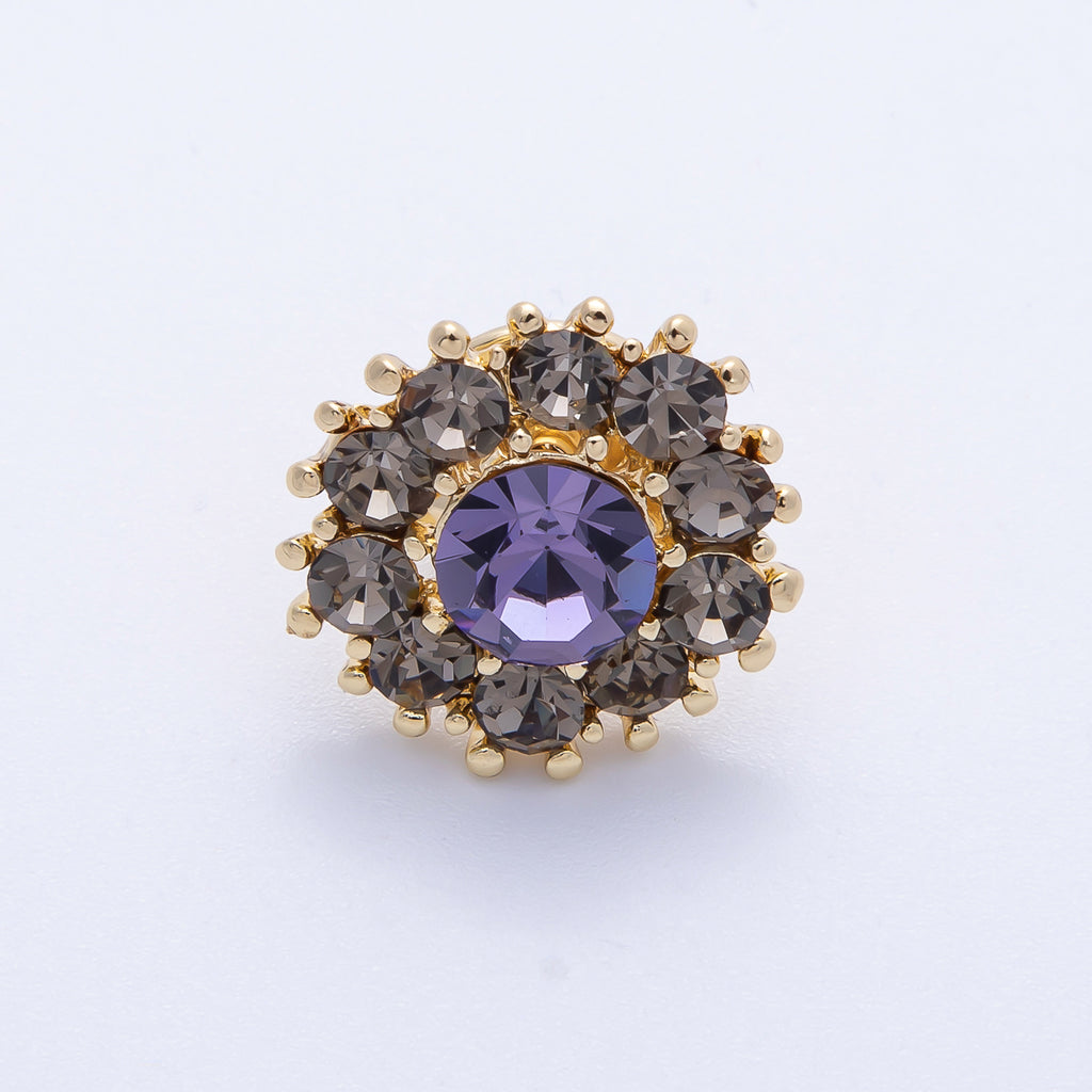 Gold 19mm Dark Rhinestone Round Pin Brooch | BH-054