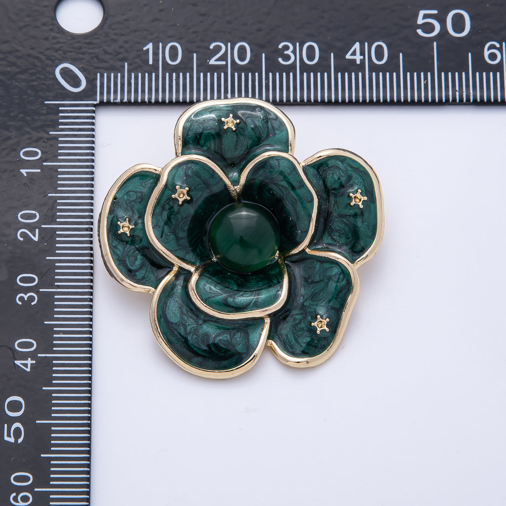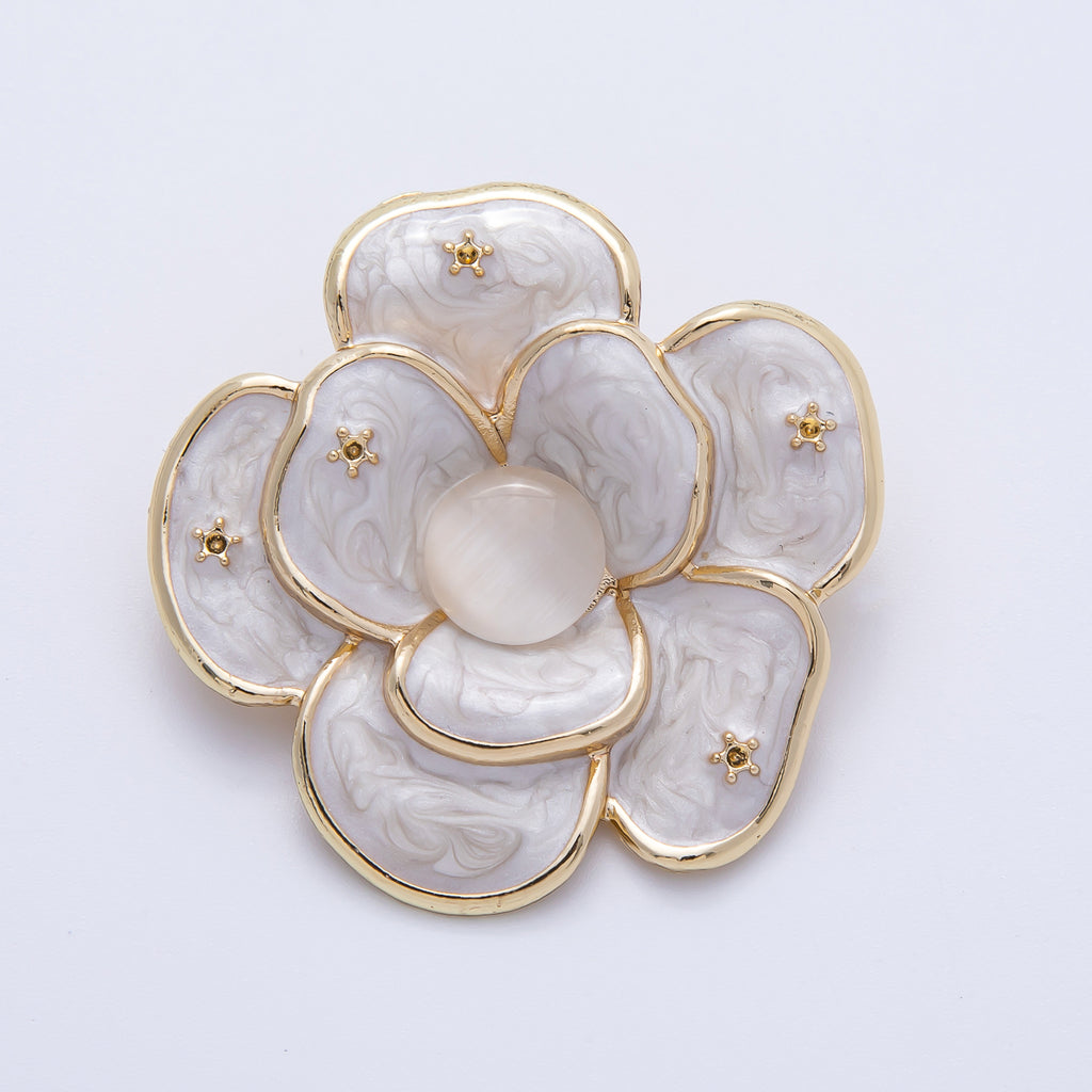Gold 40mm x 38.4mm White, Green Enamel Flower Pin Brooch | BH-090 BH-091