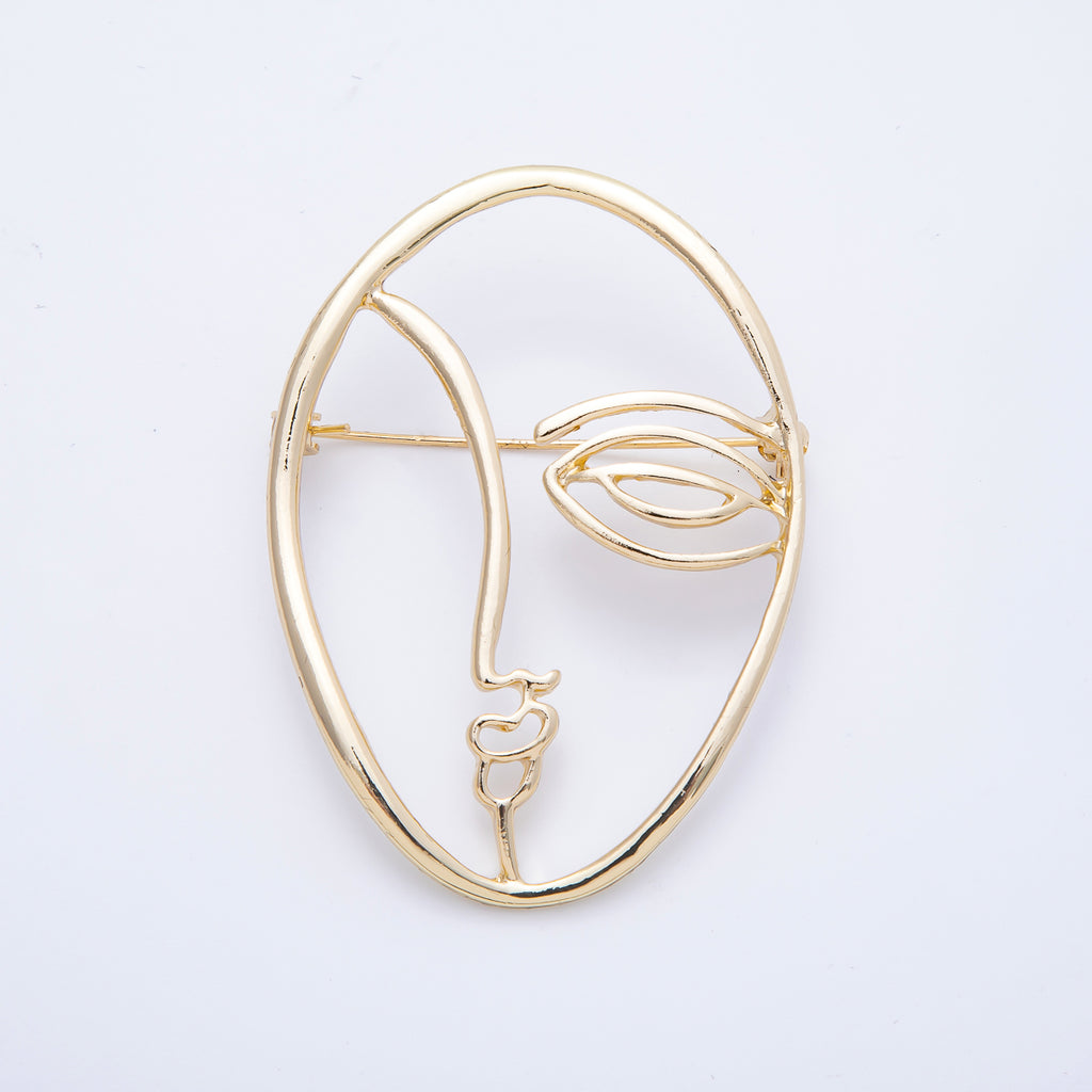 Gold 60.5mm x 43.5mm Minimalist Face Pin Brooch | BH-066