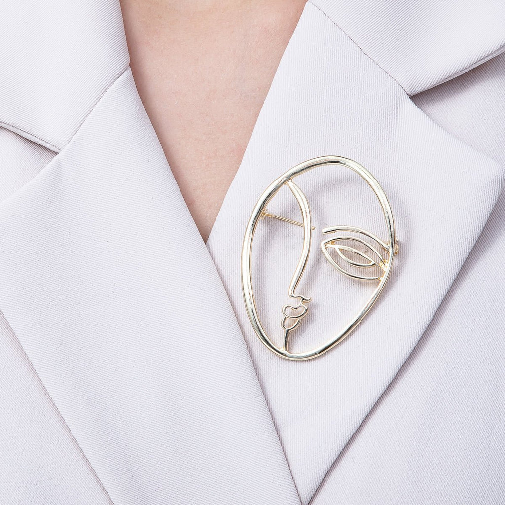 Gold Minimalist Face Pin Brooch Modern Abstract Face Woman | BH-066