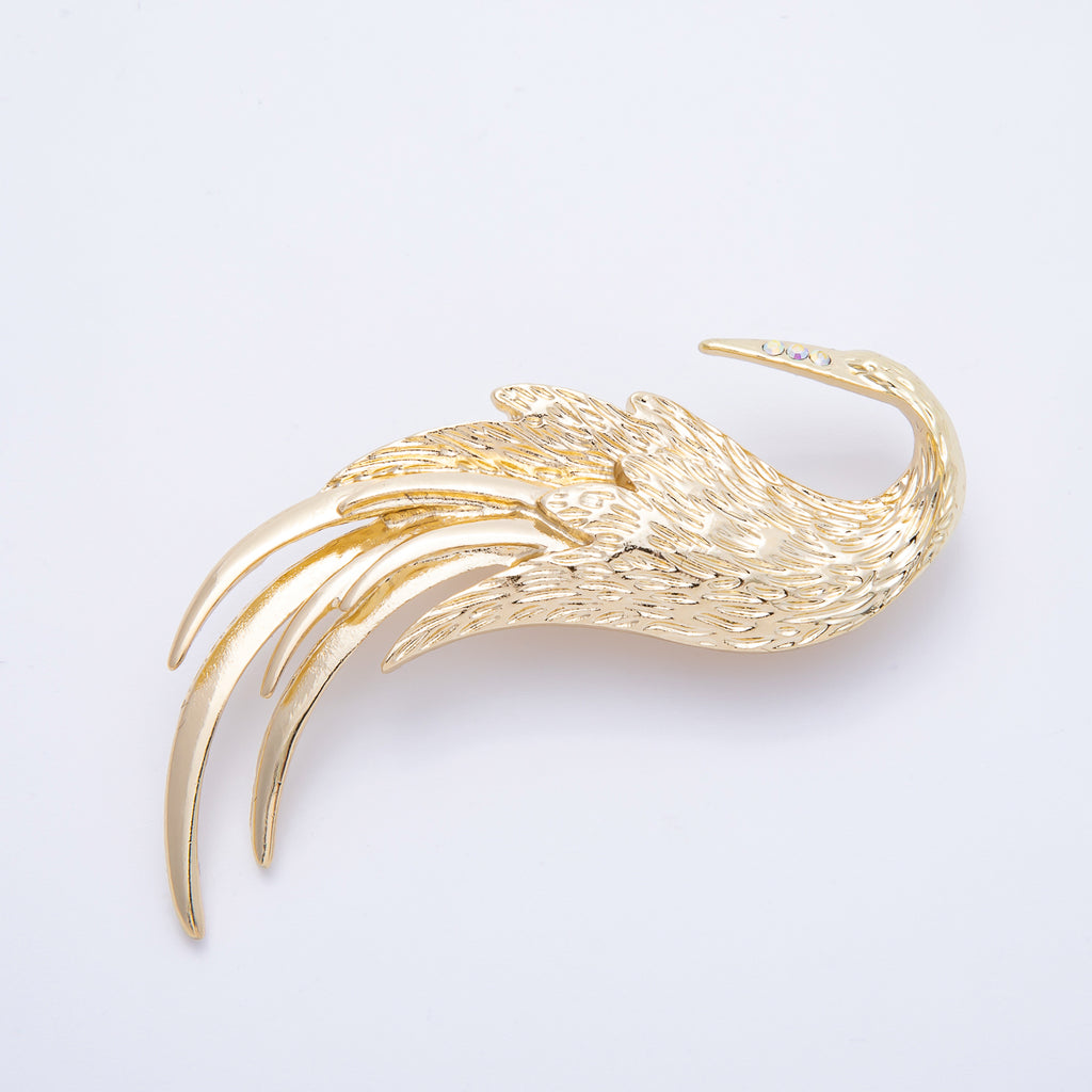 Gold 62.8mm x 48.8mm Feather Swan Bird Animal Pin Brooch | BH-084