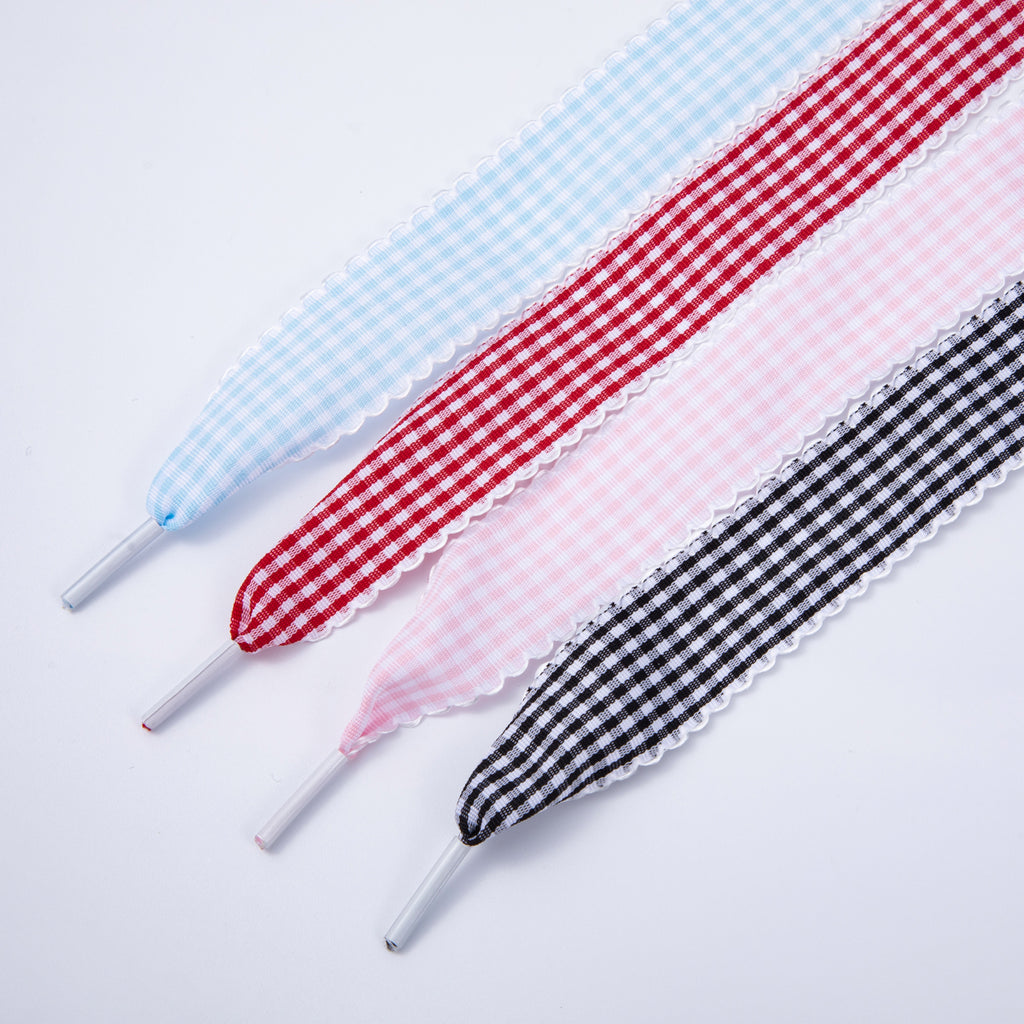Black, Blue, Red, Pink Gingham Checkered Retro Ribbon Shoelaces | WB00296 - WB00299