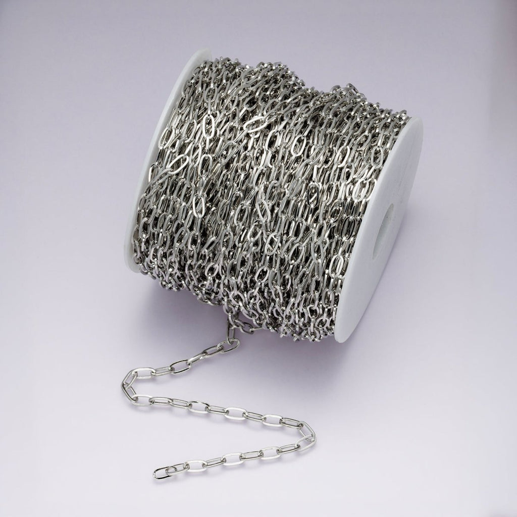 Rhodium Plated 4.6mm Minimalist Paperclip Unfinished Chain by Yard | Roll-01862