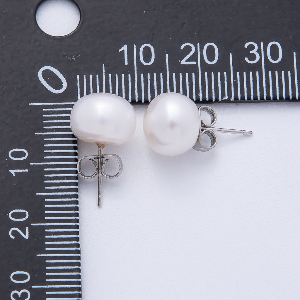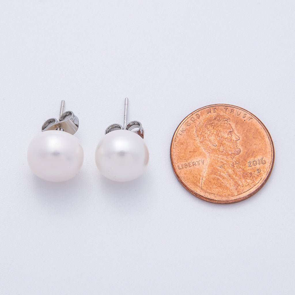 Silver 10mm White Shell Pearl Round Stud Earrings | AD1679