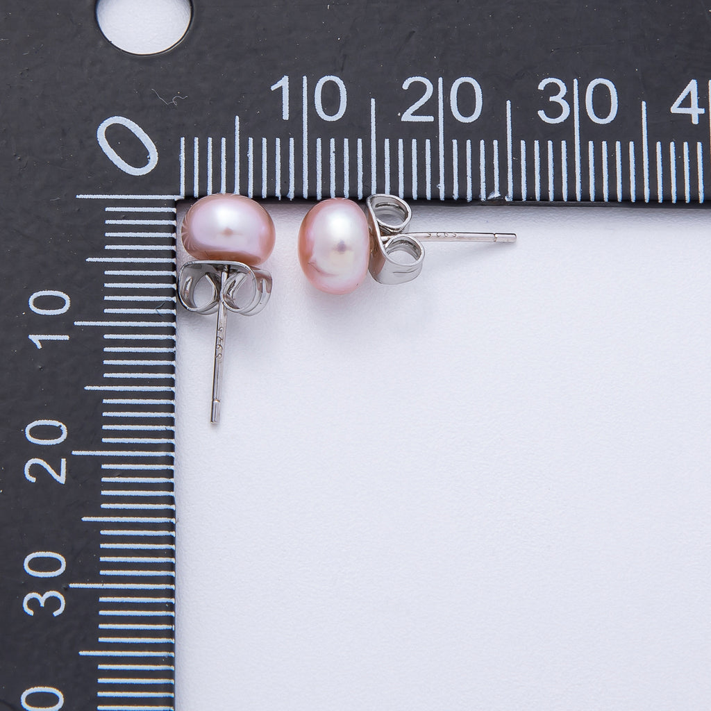 Silver 6mm White, Pink, Off-White Shell Pearl Round Stud Earrings | AD1676 - AD1678