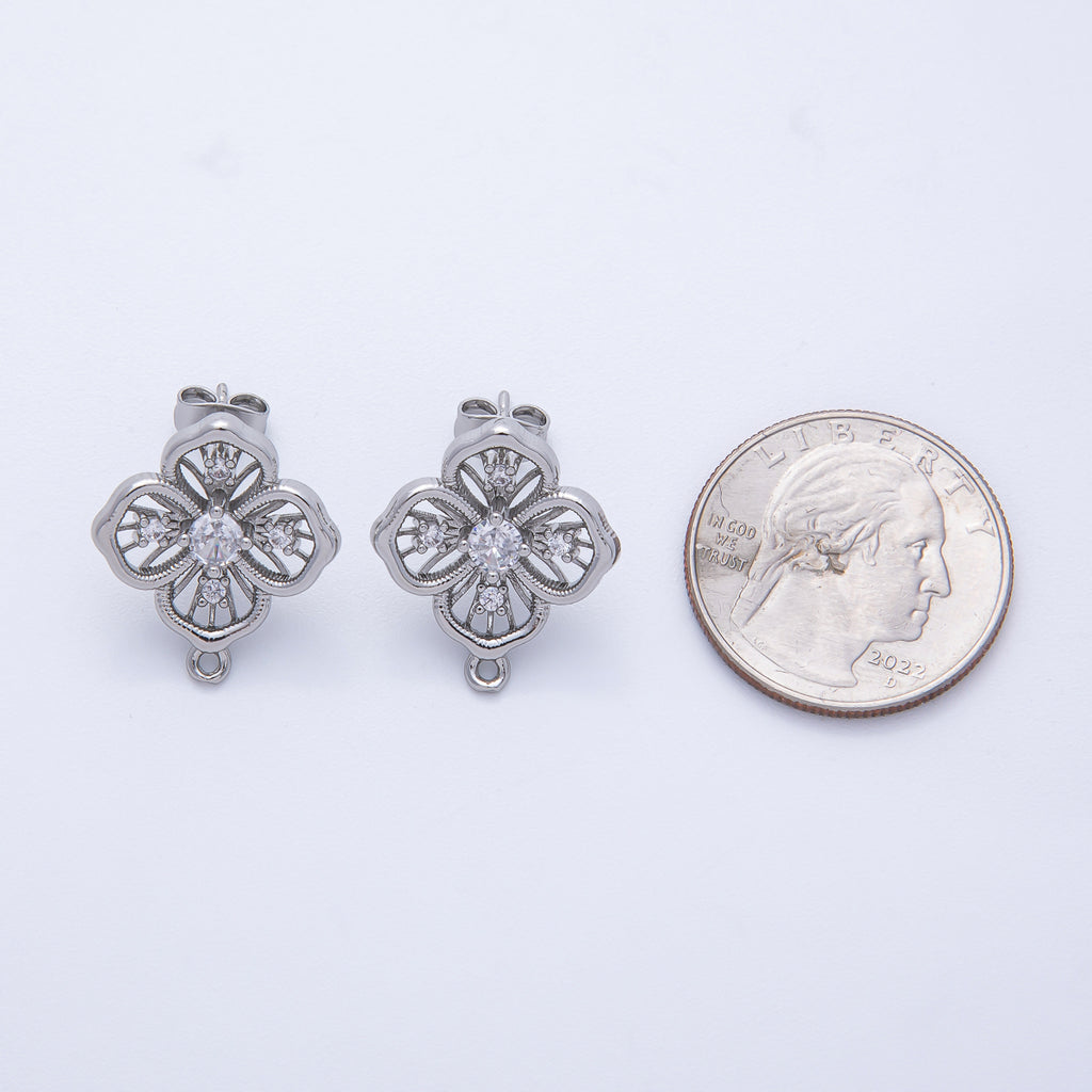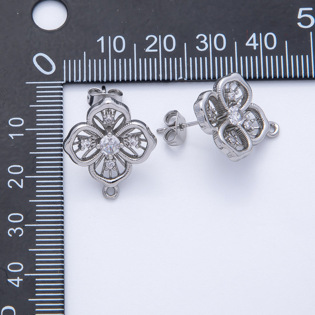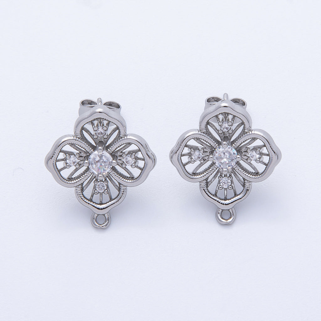 Silver 21mm Clear CZ Open Clover Flower Stud Earrings Findings Supply | Z1667