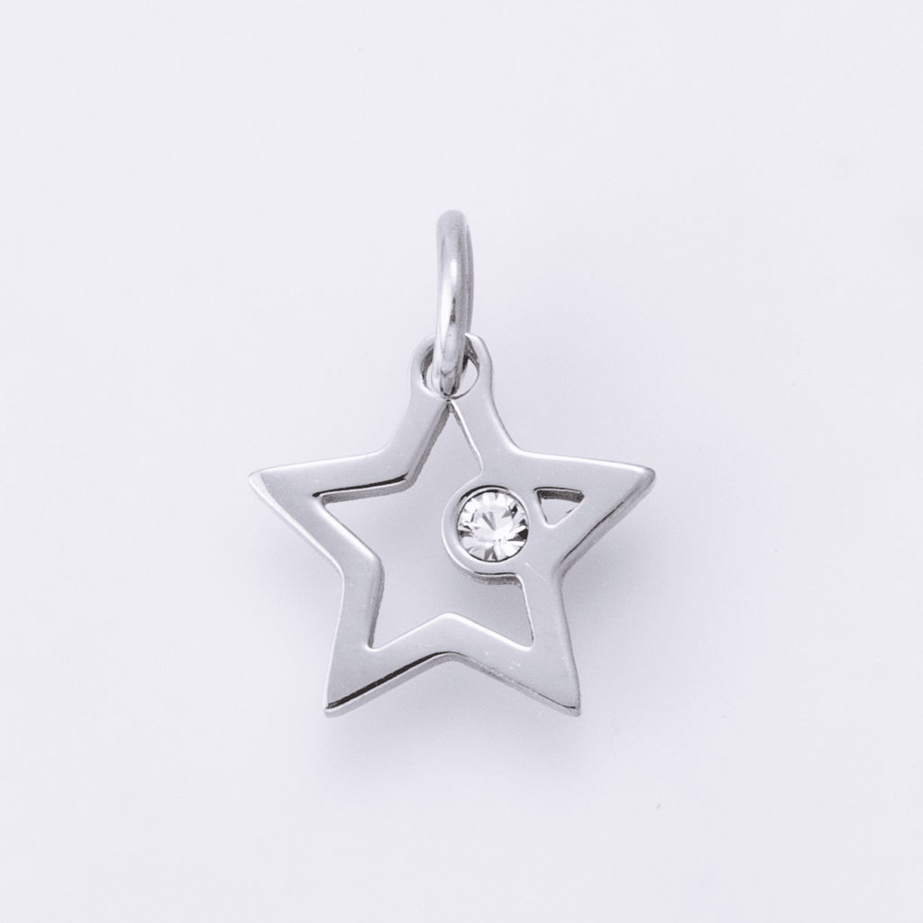 Stainless Steel Clear CZ Celestial Star Open Charm | C00387