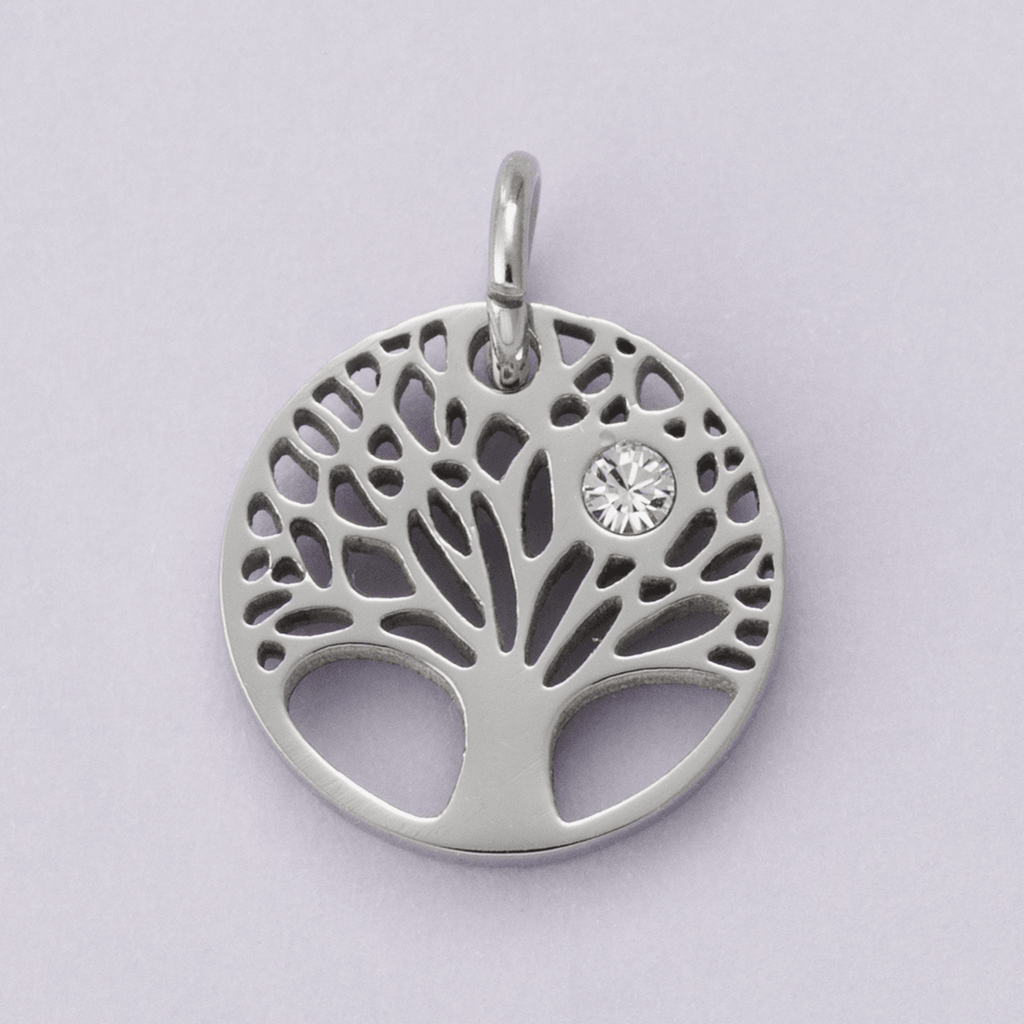Stainless Steel Clear CZ Natural Tree Open Charm in Gold & Silver | E00631