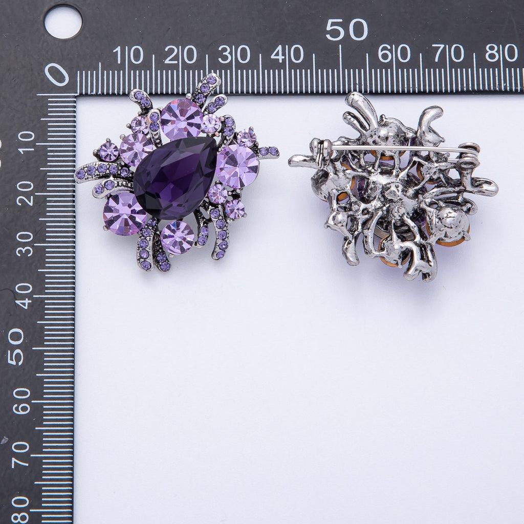 Vintage Antique Silver Brooch Purple Amethyst Crystal Pin | BH-001