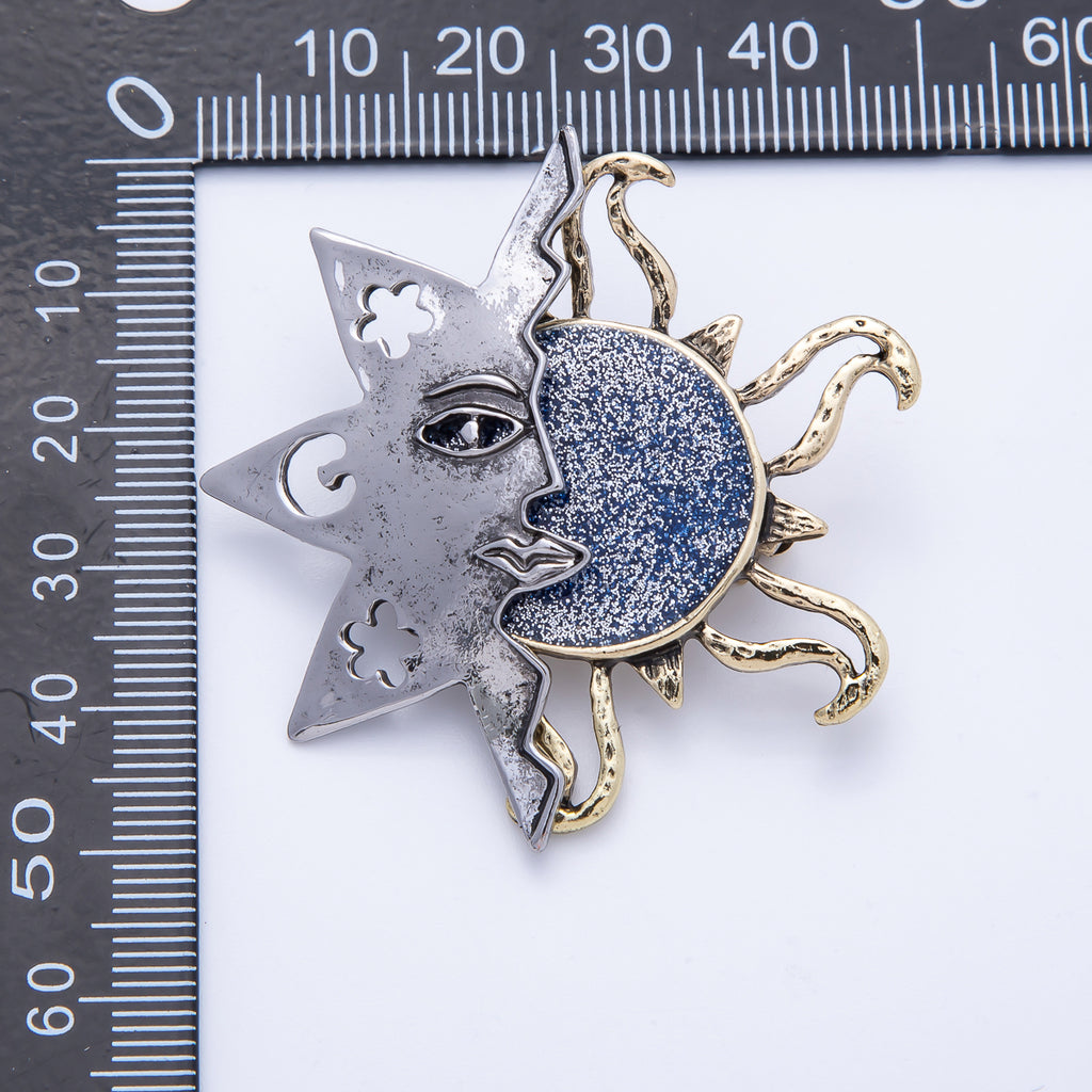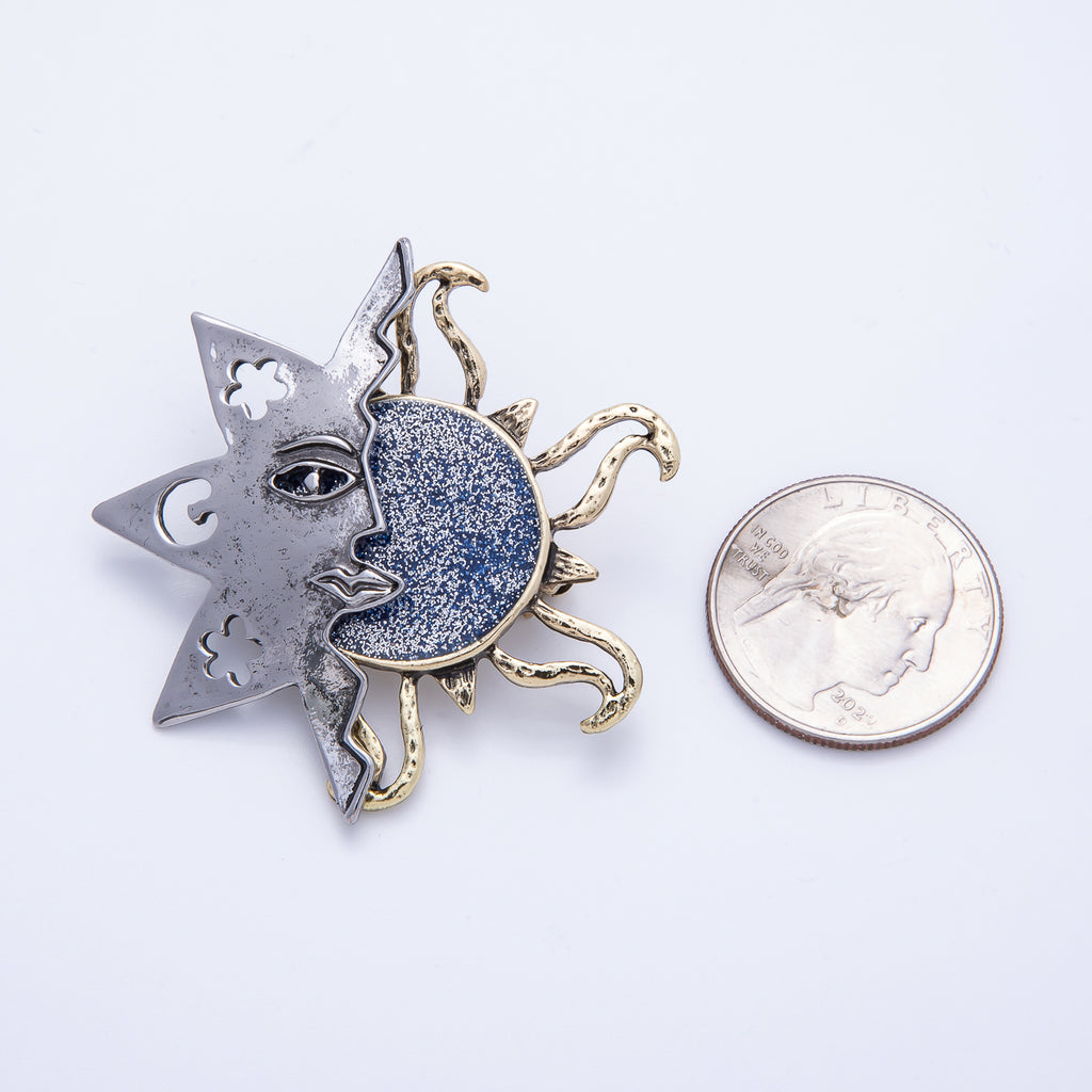 Vintage Gold 47.5mm x 45.5mm Celestial Sun Face Pin Brooch | BH-087